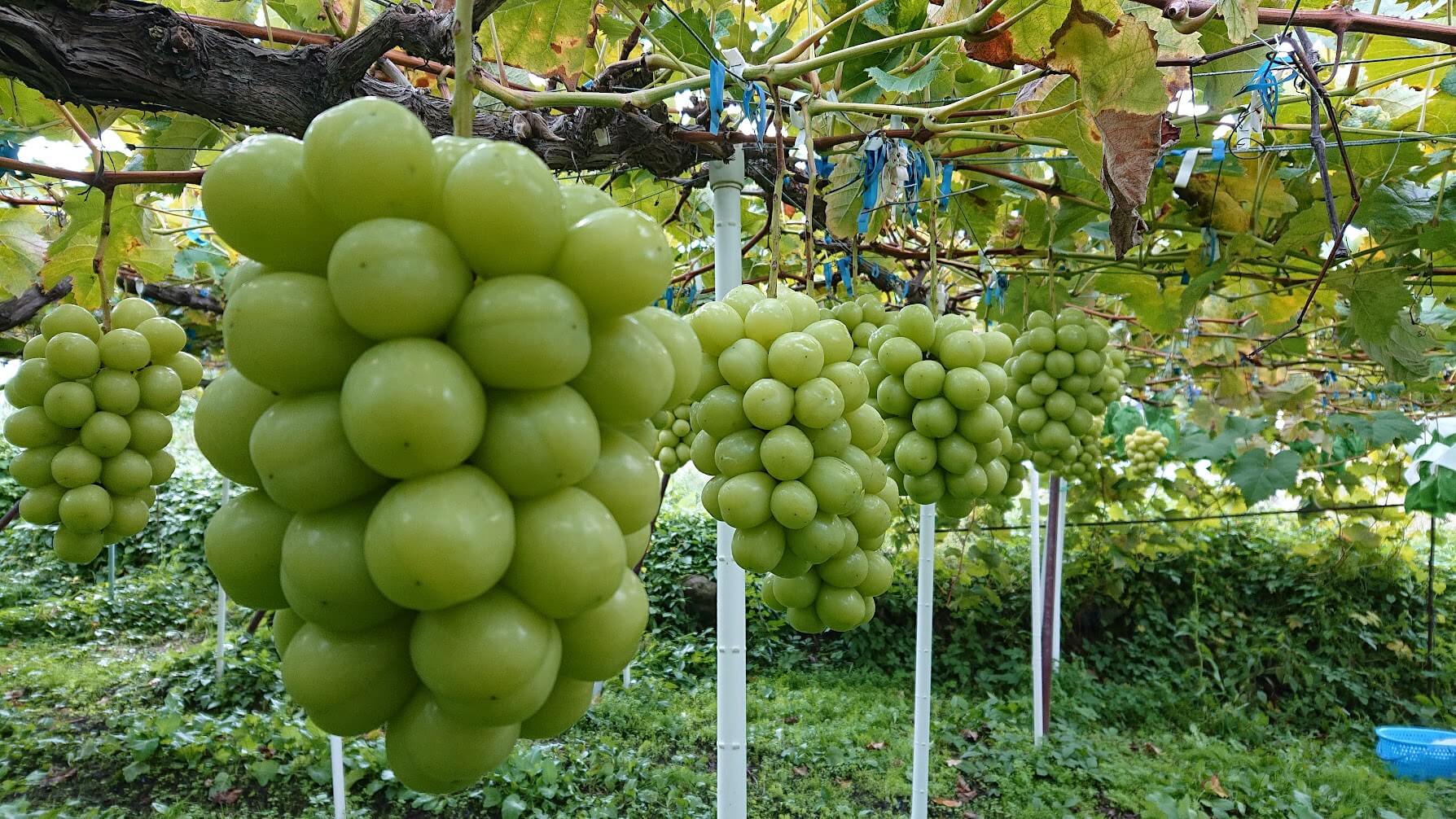巨峰の甘味と、ロザリオビアンコの香りを引き継ぐ長野県オリジナルのぶどう。皮が薄く、そのまま食べられるのが特徴の品種
